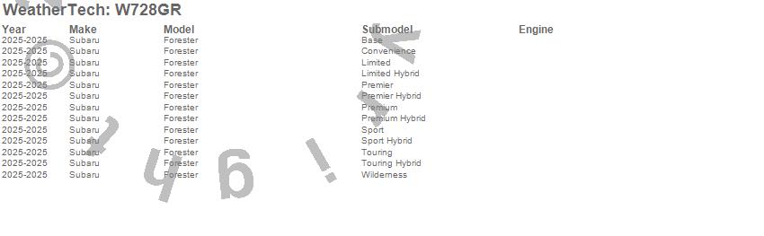 Below is an abbreviated list of applications for the All Weather Floor Mats.Forester, Subaru, 2026, 2025
