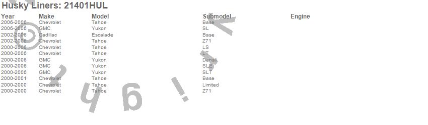Below is an abbreviated list of applications for the Classic Style Cargo Liner.Escalade, Tahoe, Yukon, Cadillac, Chevrolet, GMC, 2006, 2005, 2004, 2003, 2002, 2001, 2000
