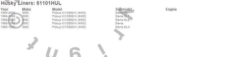 Below is an abbreviated list of applications for the Classic Style Floor Liner.K3500 Pickup, GMC, 2000, 1999, 1998, 1997, 1996, 1995, 1994, 1993, 1992, 1991, 1990, 1989, 1988