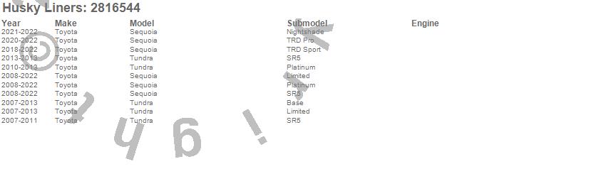 Below is an abbreviated list of applications for the Hood Shield.Sequoia, Tundra, Toyota, 2022, 2021, 2020, 2019, 2018, 2017, 2016, 2015, 2014, 2013, 2012, 2011, 2010, 2009, 2008, 2007