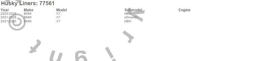 Brand: Husky LinersPart Number: 77561Floor Mat Set Type: 1 pc. - 3rd Seat - w/2nd Row Bucket Seats - BlackUPC: 753933775612