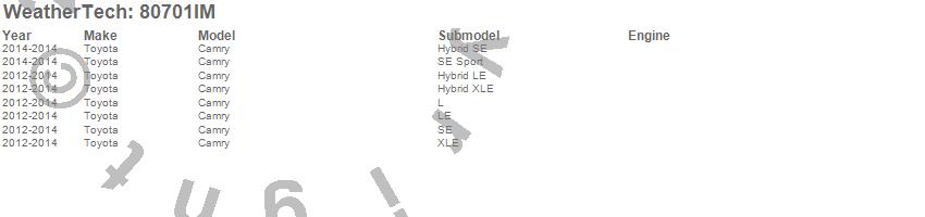 Below is an abbreviated list of applications for the Side Window Deflector.Camry, Toyota, 2014, 2013, 2012