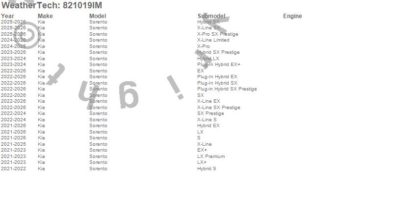 Below is an abbreviated list of applications for the Side Window Deflector Set.Sorento, Kia, 2026, 2025, 2024, 2023, 2022, 2021
