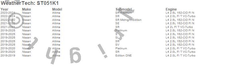 Below is an abbreviated list of applications for the Sill Protector.Altima, Nissan, 2025, 2024, 2023, 2022, 2021, 2020, 2019