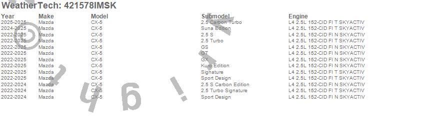 Below is an abbreviated list of applications for the SeatBack Cargo Liner HP w/Bumper Protector.CX-5, Mazda, 2025, 2024, 2023, 2022