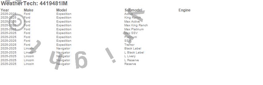 Below is an abbreviated list of applications for the FloorLiner HP.Expedition, Navigator, Ford, Lincoln, 2025