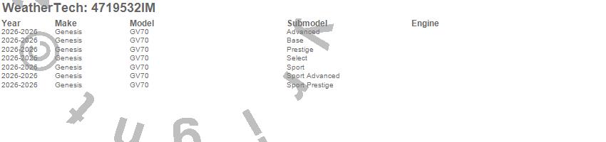 Below is an abbreviated list of applications for the FloorLiner HP.GV70, Genesis, 2026