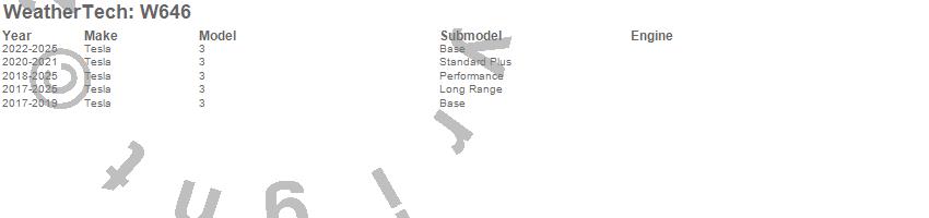 Below is an abbreviated list of applications for the All Weather Floor Mats.3, Tesla, 2025, 2024, 2023, 2022, 2021, 2020, 2019, 2018, 2017
