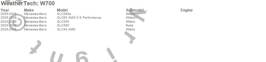 Below is an abbreviated list of applications for the All Weather Floor Mats.GLC300, GLC350e, GLC43 AMG, GLC63 AMG S E Performance, Mercedes-Benz, 2026, 2025, 2024