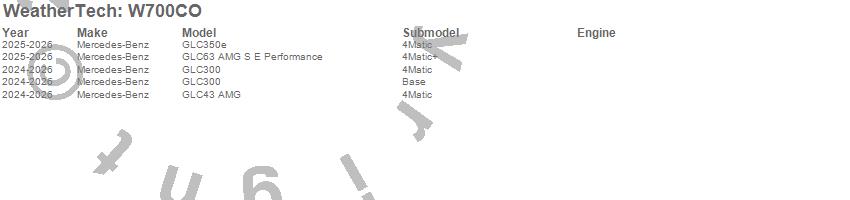 Below is an abbreviated list of applications for the All Weather Floor Mats.GLC300, GLC350e, GLC43 AMG, GLC63 AMG S E Performance, Mercedes-Benz, 2026, 2025, 2024