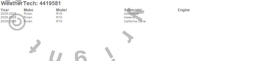 Below is an abbreviated list of applications for the FloorLiner DigitalFit.R1S, Rivian, 2025