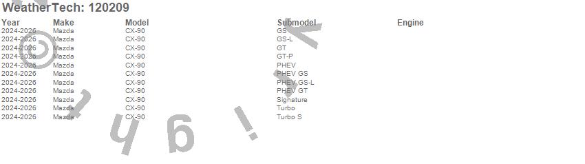 Below is an abbreviated list of applications for the MudFlap No-Drill DigitalFit.CX-90, Mazda, 2026, 2025, 2024