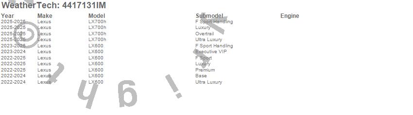 Below is an abbreviated list of applications for the FloorLiner HP.LX600, LX700h, Lexus, 2025, 2024, 2023, 2022