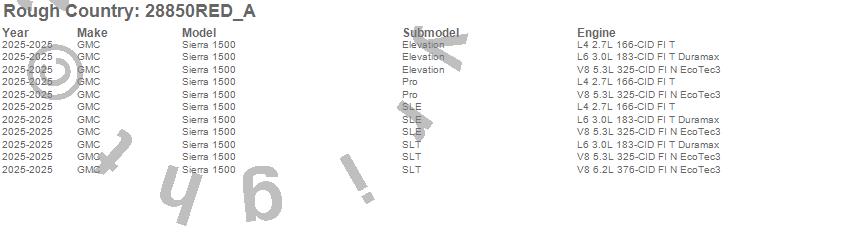 Below is an abbreviated list of applications for the Suspension Lift Kit w/Shocks.Sierra 1500, GMC, 2025