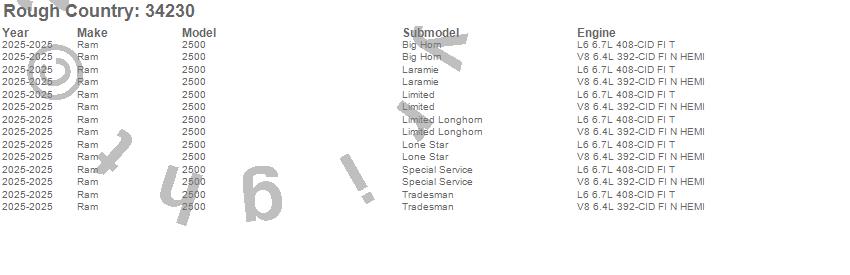 Below is an abbreviated list of applications for the Suspension Lift Kit w/Shocks.2500, Ram, 2025