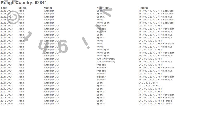 Below is an abbreviated list of applications for the Suspension Lift Kit w/Shocks.Wrangler, Wrangler (JL), Jeep, 2023, 2022, 2021, 2020, 2019