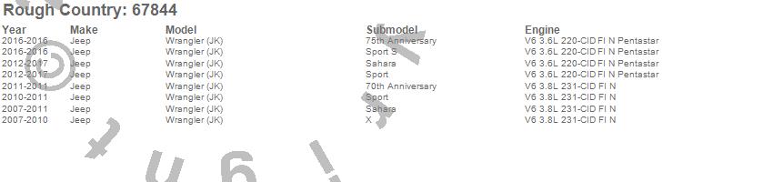 Below is an abbreviated list of applications for the Suspension Lift Kit w/Shocks.Wrangler (JK), Jeep, 2017, 2016, 2015, 2014, 2013, 2012, 2011, 2010, 2009, 2008, 2007