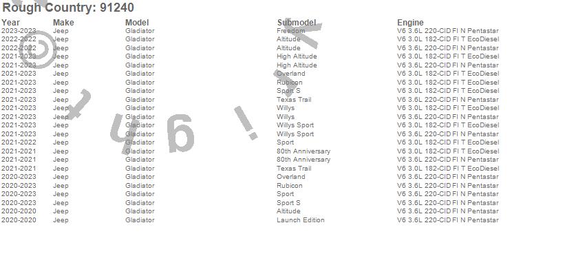 Below is an abbreviated list of applications for the Suspension Lift Kit w/Shocks.Gladiator, Jeep, 2023, 2022, 2021, 2020