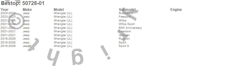 Brand: BestopPart Number: 50728-01Top-Soft Type: Black Crush - HardwareUPC: 077848149932
