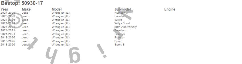 Brand: BestopPart Number: 50930-17Top-Soft Type: Premium Black TwillUPC: 077848148638