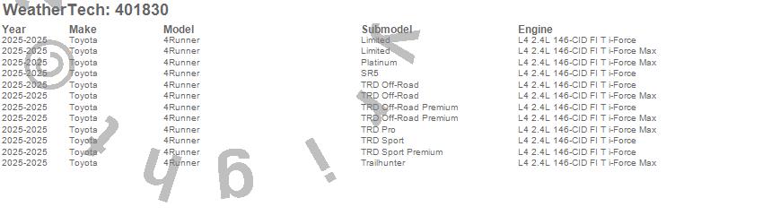 Below is an abbreviated list of applications for the Cargo Liner.4Runner, Toyota, 2025