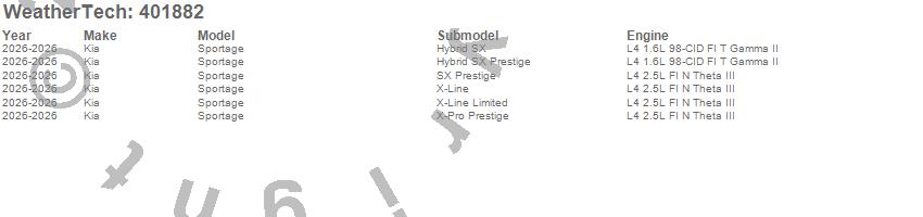 Below is an abbreviated list of applications for the Cargo Liner.Sportage, Kia, 2026