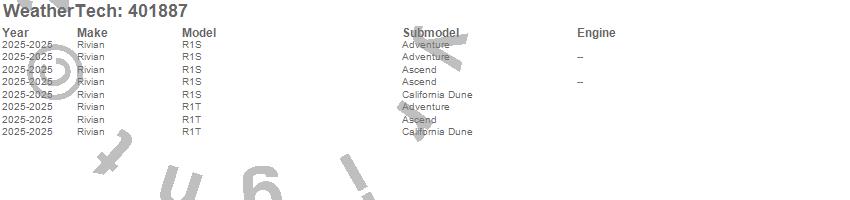 Below is an abbreviated list of applications for the Cargo Liner.R1S, R1T, Rivian, 2025
