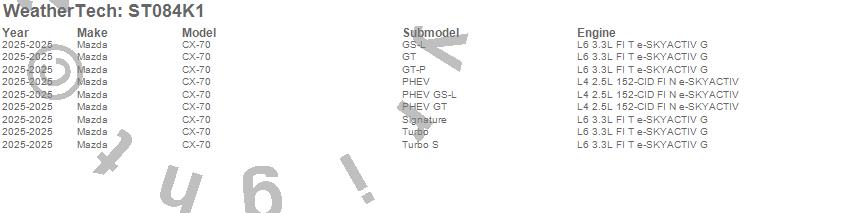 Below is an abbreviated list of applications for the Sill Protector.CX-70, Mazda, 2025