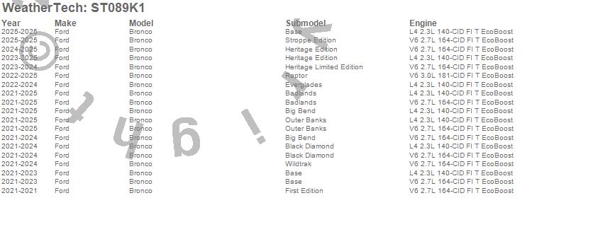 Below is an abbreviated list of applications for the Sill Protector.Bronco, Ford, 2025, 2024, 2023, 2022, 2021