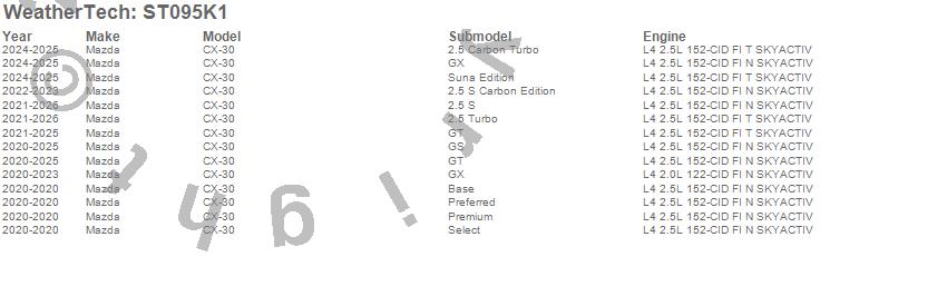 Below is an abbreviated list of applications for the Sill Protector.CX-30, Mazda, 2026, 2025, 2024, 2023, 2022, 2021, 2020