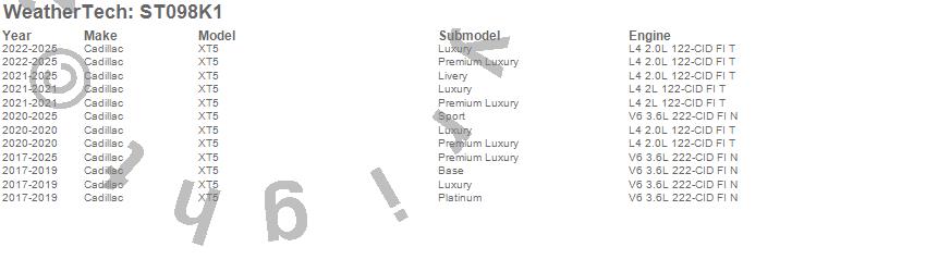 Below is an abbreviated list of applications for the Sill Protector.XT5, Cadillac, 2025, 2024, 2023, 2022, 2021, 2020, 2019, 2018, 2017
