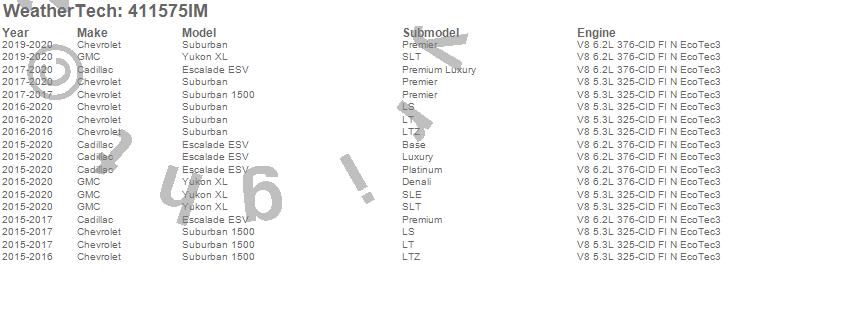 Below is an abbreviated list of applications for the SeatBack Cargo Liner HP.Escalade ESV, Suburban, Suburban 1500, Yukon XL, Cadillac, Chevrolet, GMC, 2020, 2019, 2018, 2017, 2016, 2015