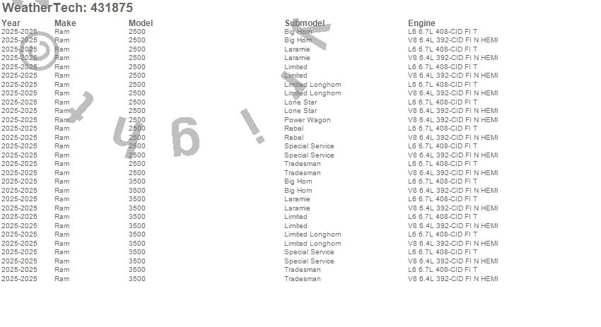 Below is an abbreviated list of applications for the Cargo Liner.2500, 3500, Ram, 2025