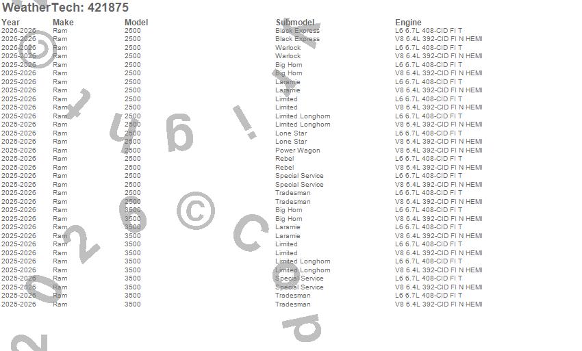 Below is an abbreviated list of applications for the Cargo Liner.2500, 3500, Ram, 2026, 2025