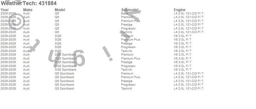 Below is an abbreviated list of applications for the Cargo Liner.Q5, Q5 Sportback, SQ5, SQ5 Sportback, Audi, 2026, 2025