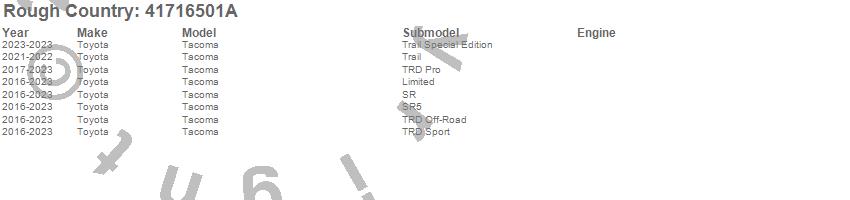 Brand: Rough CountryPart Number: 41716501ATonneau Cover Type: For 5 ft BedUPC: 840269972430