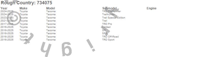 Brand: Rough CountryPart Number: 734075Cargo Box Type: Passengers SideUPC: 840269972720
