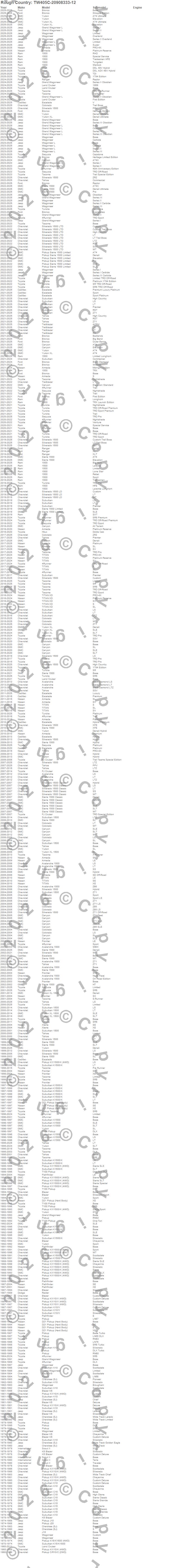 Below is an abbreviated list of applications for the Torque TW405 Pulse Wheel.1500, 4Runner, Armada, Avalanche, Avalanche 1500, Blazer, Blazer K5, Bronco, C10 Pickup, C15 Suburban, Canyon, Cherokee (SJ), Colorado, D21 Pickup (Hard Body), Escalade, FJ Cruiser, Frontier, Grand Wagoneer, Grand Wagoneer L, Hilux