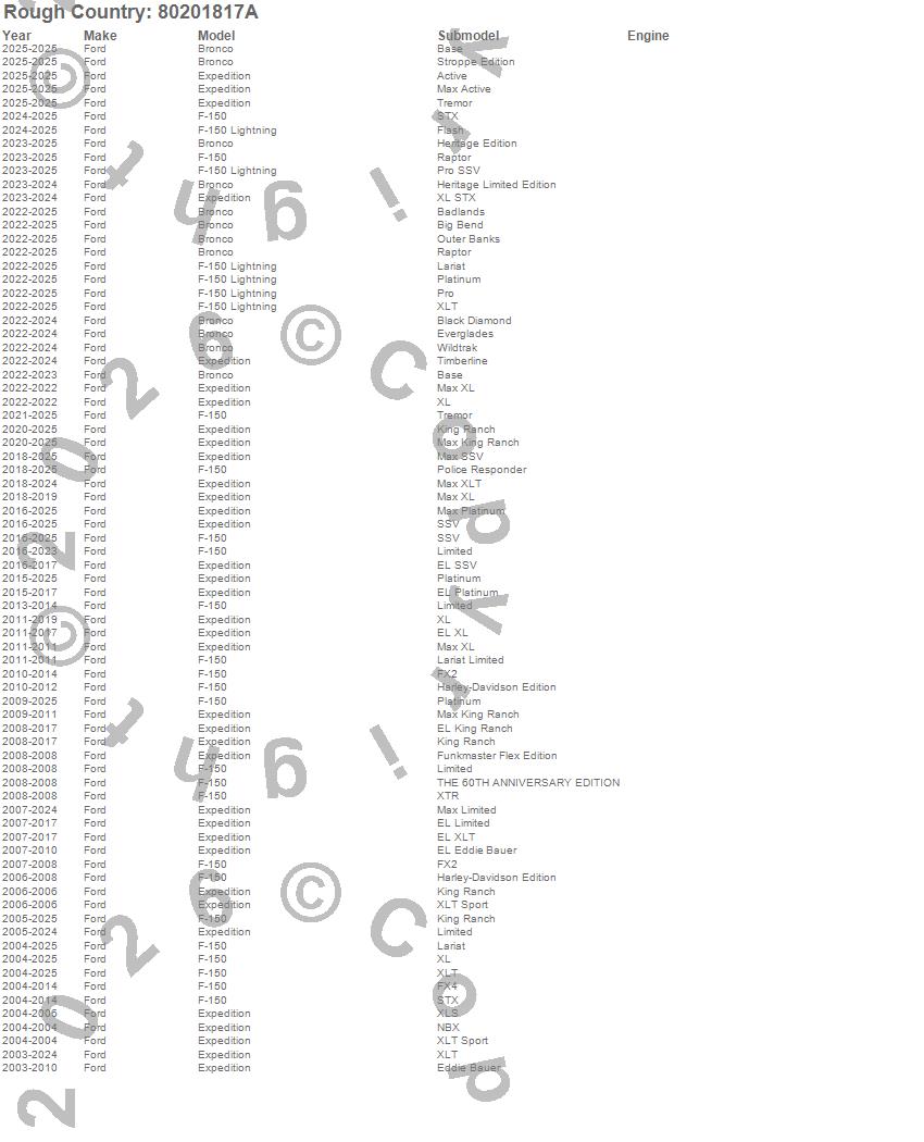 Below is an abbreviated list of applications for the Series 80 Wheel.Bronco, Expedition, F-150, F-150 Lightning, Ford, 2025, 2024, 2023, 2022, 2021, 2020, 2019, 2018, 2017, 2016, 2015, 2014, 2013, 2012, 2011