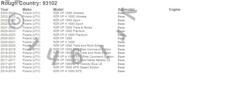 Below is an abbreviated list of applications for the Radius Arm Kit.RZR XP 1000, RZR XP 1000 EPS Desert Edition, RZR XP 1000 EPS Gold Matte Metallic LE, RZR XP 1000 EPS Ride Command Edition, RZR XP 1000 EPS Trails and Rock Edition, RZR XP 1000 EPS Velocity Blue LE, RZR XP 1000 Premium, RZR XP 1000 Sport, RZR XP 1000 Trails & Rocks, RZR XP 1000 Trails and Rock Edition, RZR XP 1000 Ultimate, RZR XP 4 1000, RZR XP 4 1000 EPS, RZR XP 4 1000 EPS Ride Command Edition, RZR XP 4 1000 Premium, RZR XP 4 1000 Sport, RZR XP 4 1000 Ultimate, Polaris (UTV), 2023, 2022