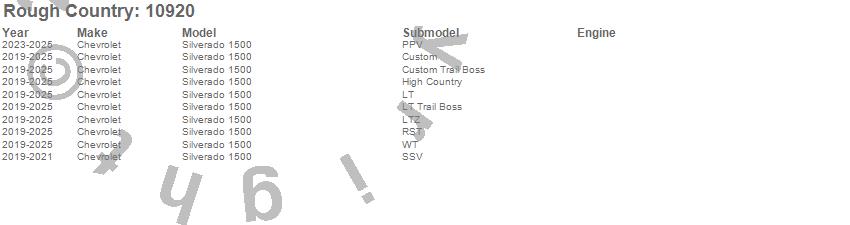 Brand: Rough CountryPart Number: 10920Skid Plate Type: UPC: 840269973055