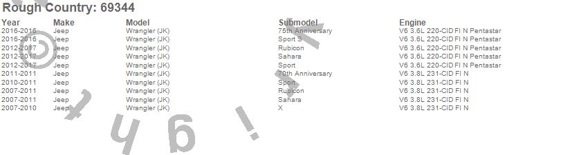 Below is an abbreviated list of applications for the Leveling Lift Kit w/Shocks.Wrangler (JK), Jeep, 2017, 2016, 2015, 2014, 2013, 2012, 2011, 2010, 2009, 2008, 2007