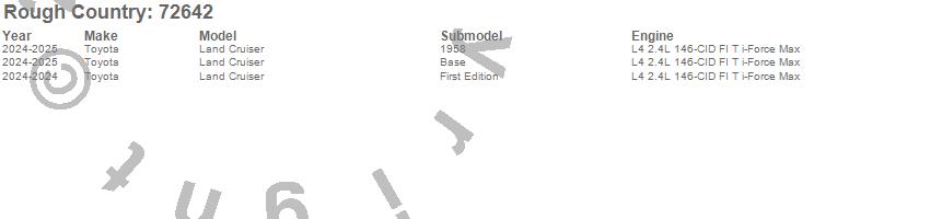 Below is an abbreviated list of applications for the Leveling Lift Kit w/Shocks.Land Cruiser, Toyota, 2025, 2024
