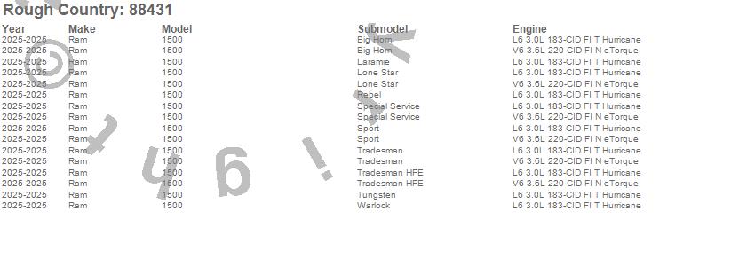 Below is an abbreviated list of applications for the Leveling Lift Kit w/Shocks.1500, Ram, 2025