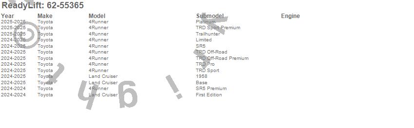 Below is an abbreviated list of applications for the SST Lift Kit w/Shocks.4Runner, Land Cruiser, Toyota, 2025, 2024
