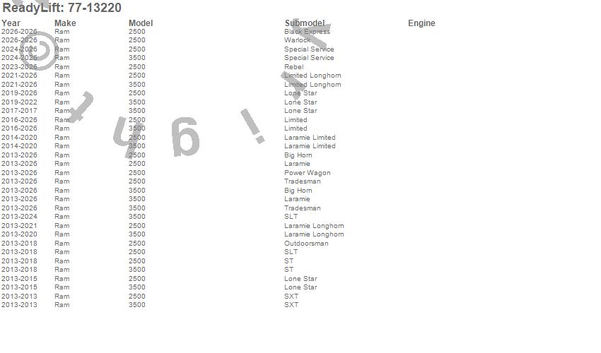 Below is an abbreviated list of applications for the Dual Steering Stabilizer.2500, 3500, Ram, 2026, 2025, 2024, 2023, 2022, 2021, 2020, 2019, 2018, 2017, 2016, 2015, 2014, 2013