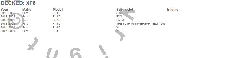 Below is an abbreviated list of applications for the DECKED Two Drawer Storage System.F-150, Ford, 2014, 2013, 2012, 2011, 2010, 2009, 2008, 2007, 2006, 2005, 2004