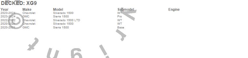 Below is an abbreviated list of applications for the DECKED Two Drawer Storage System.Sierra 1500, Silverado 1500, Silverado 1500 LTD, Chevrolet, GMC, 2024, 2023, 2022, 2021, 2020