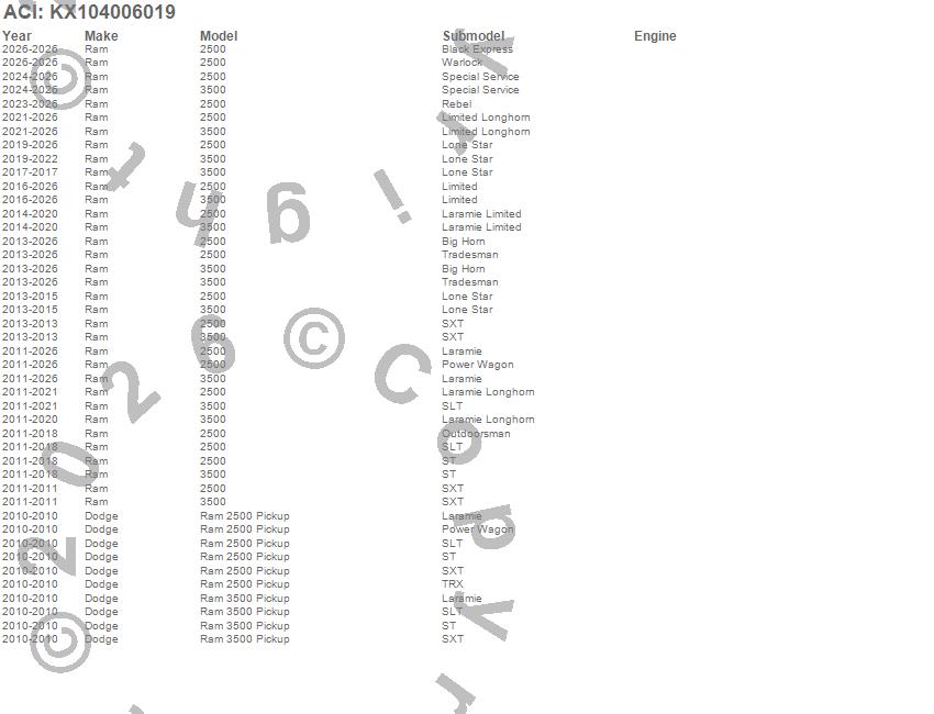 Below is an abbreviated list of applications for the DURACAP JOURNEY Hard Truck Topper.2500, 3500, Ram 2500, Ram 3500, Dodge, Ram, 2026, 2025, 2024, 2023, 2022, 2021, 2020, 2019, 2018, 2017, 2016, 2015, 2014, 2013