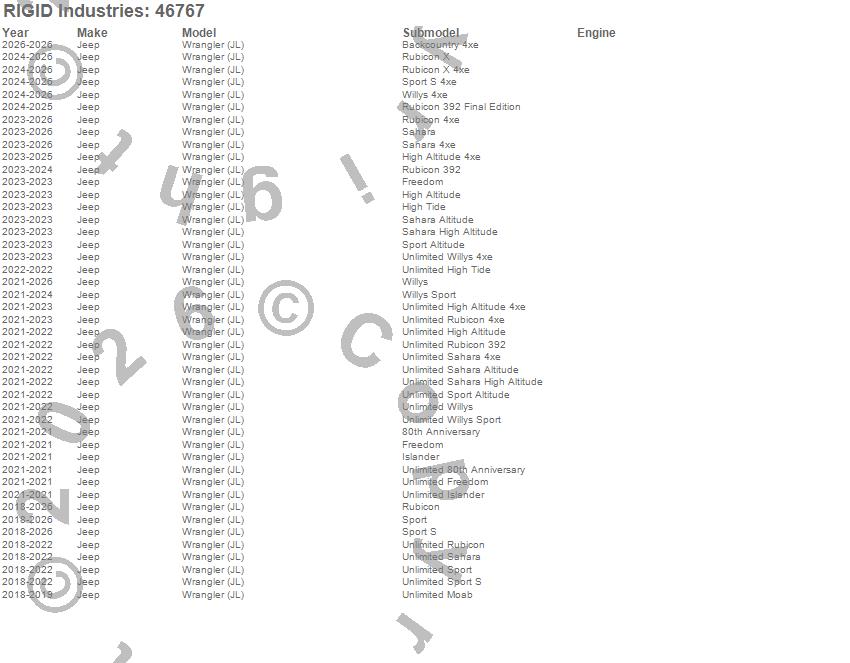 Below is an abbreviated list of applications for the 360-Series A-Pillar Light Kit.Wrangler (JL), Jeep, 2026, 2025, 2024, 2023, 2022, 2021, 2020, 2019, 2018